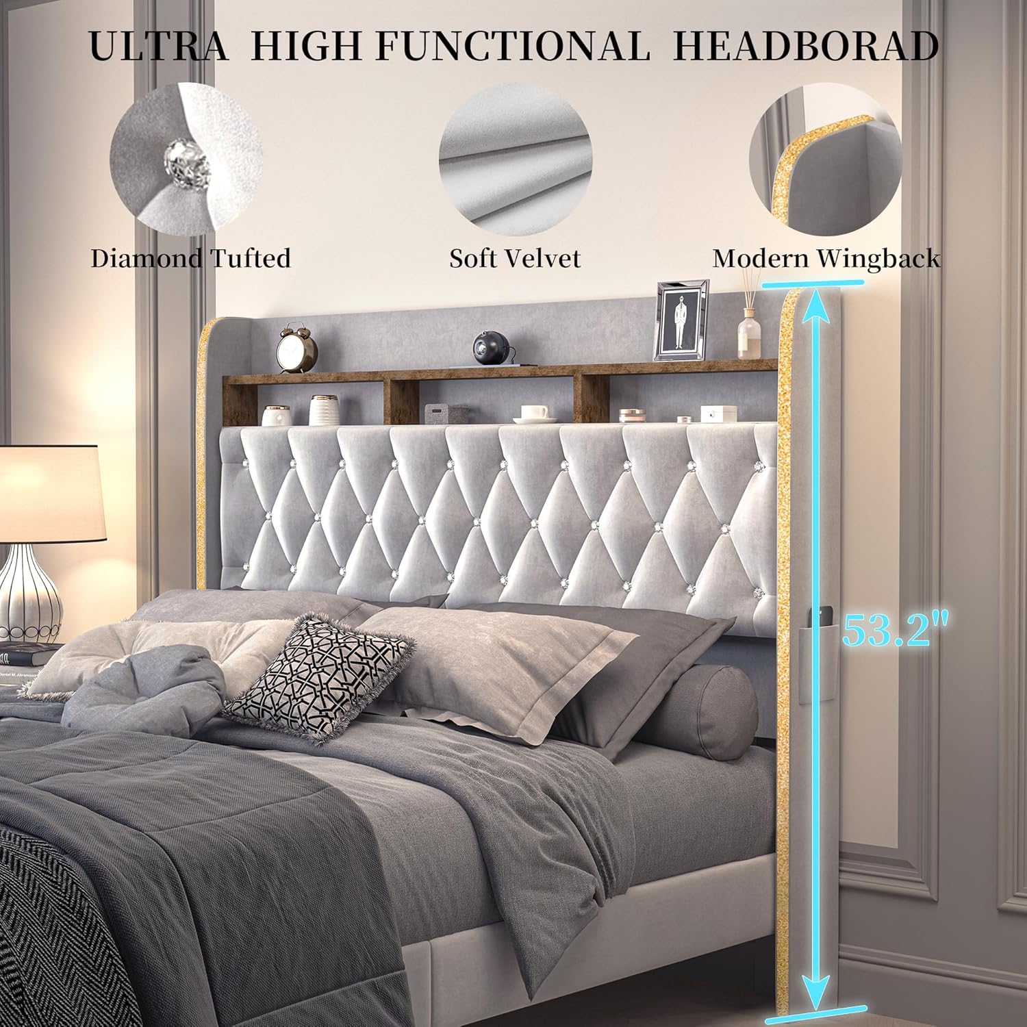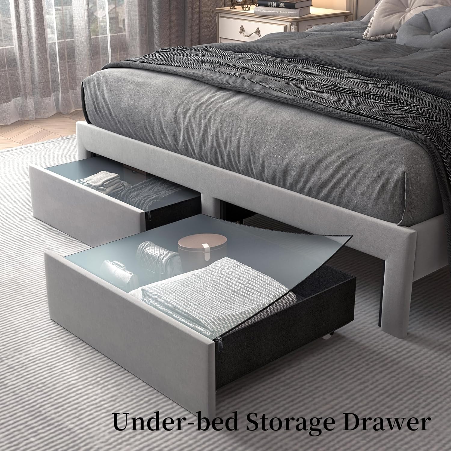 This bed doesn’t just look amazing—it’s designed to simplify your life. The 2 spacious under-bed drawers glide smoothly on wheels, perfect for storing extra bedding, clothes, or accessories. The 53.2-inch tall headboard offers both elegance and practical storage shelves for books, decor, and essentials, keeping your space neat and organized.