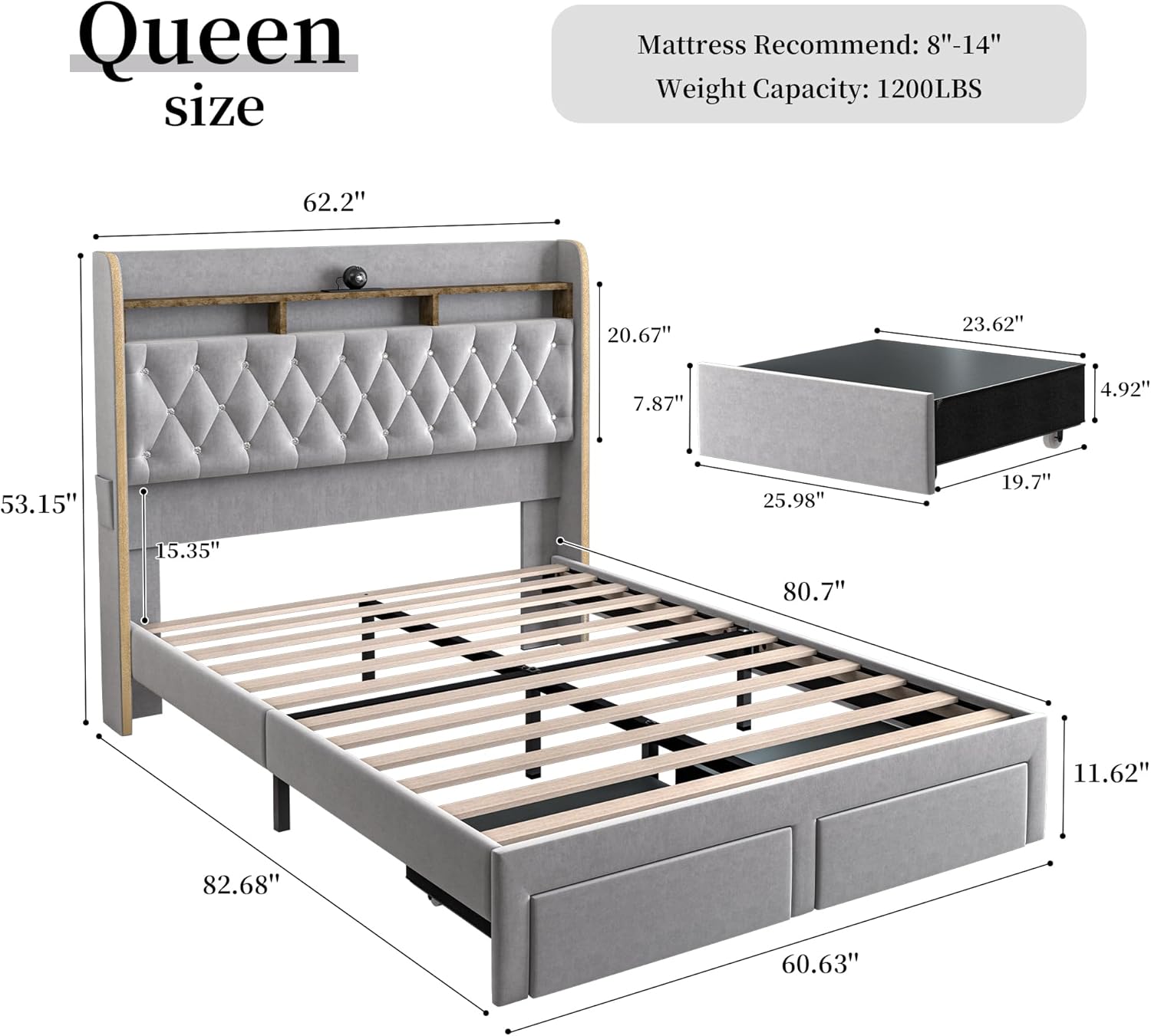 Upgrade your nights and illuminate your style—order the Queen LED Bed Frame with Storage Drawers today and turn your bedroom into a glowing sanctuary of comfort, convenience, and modern elegance.