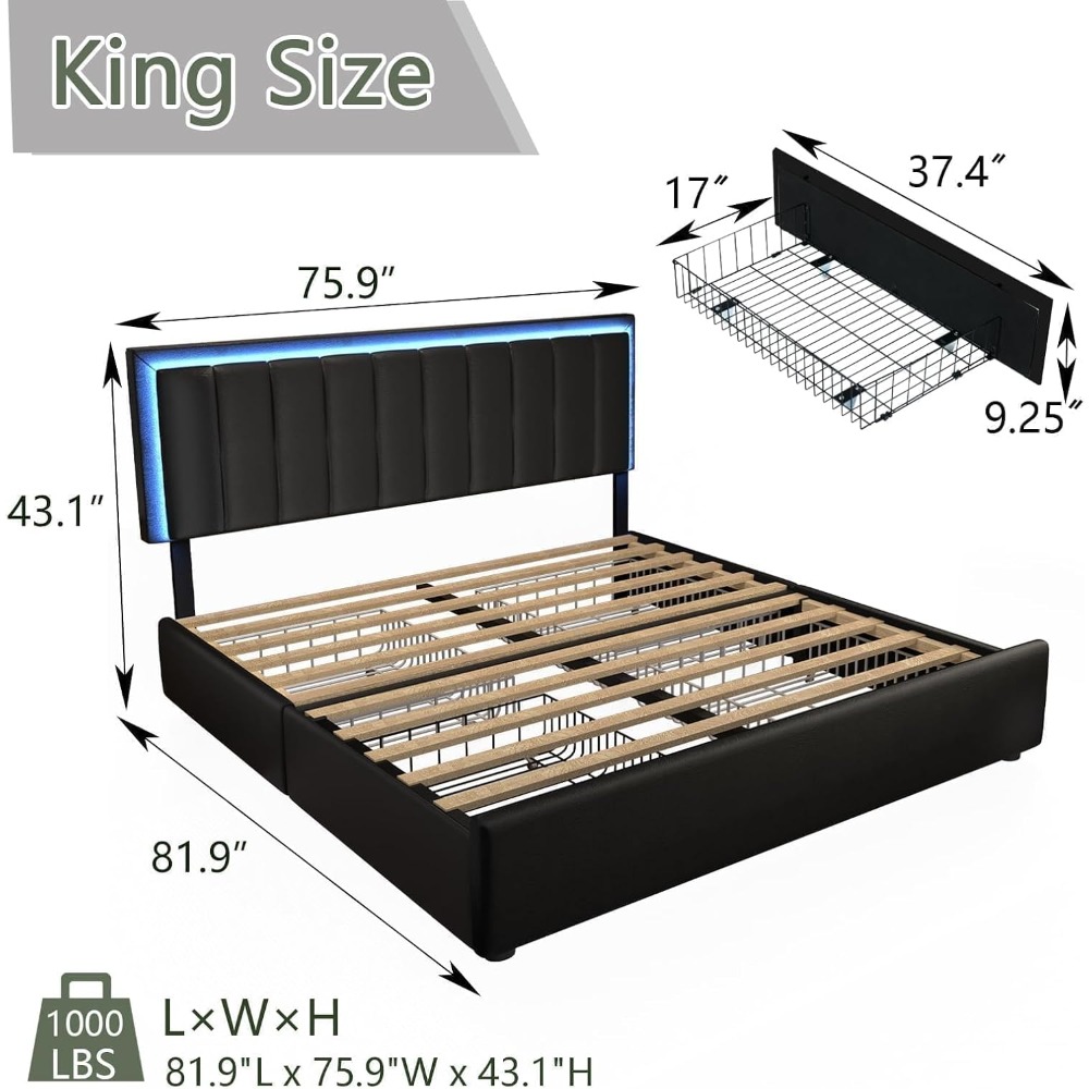 Stylish King Bed Frame with Storage and RGB LED Lights