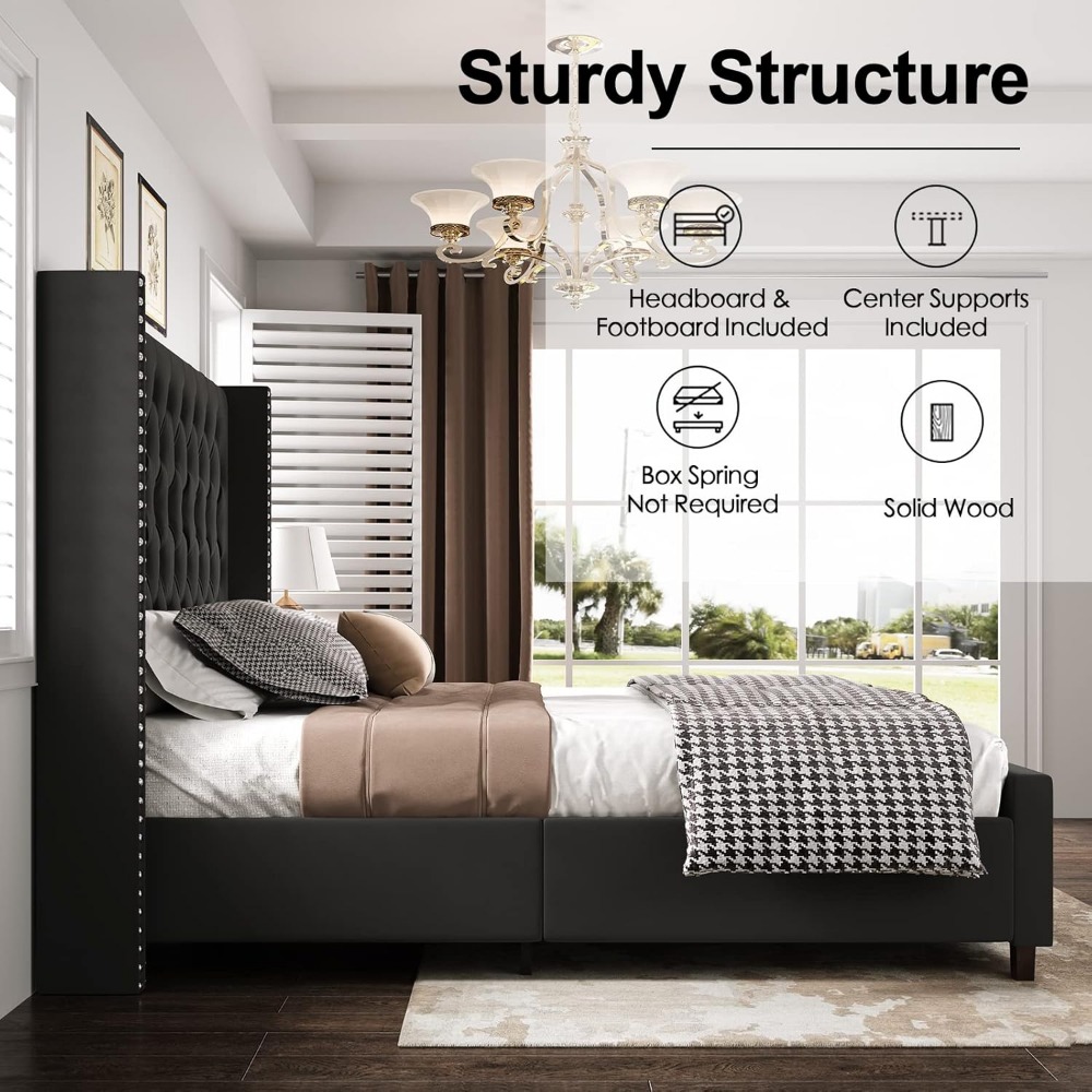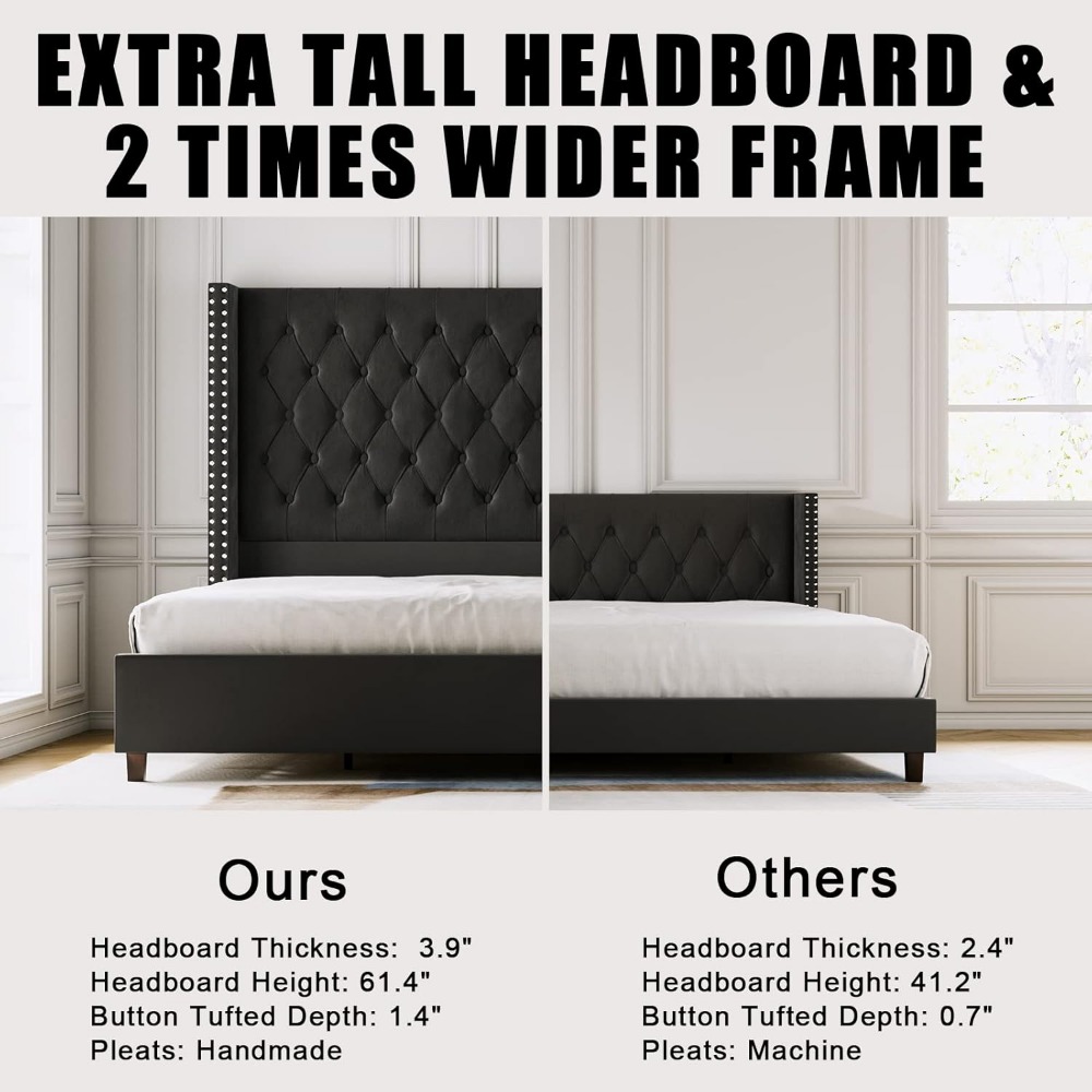 - Grand High Headboard: The majestic 61.4" height offers a luxurious touch and extra comfort when sitting up in bed.