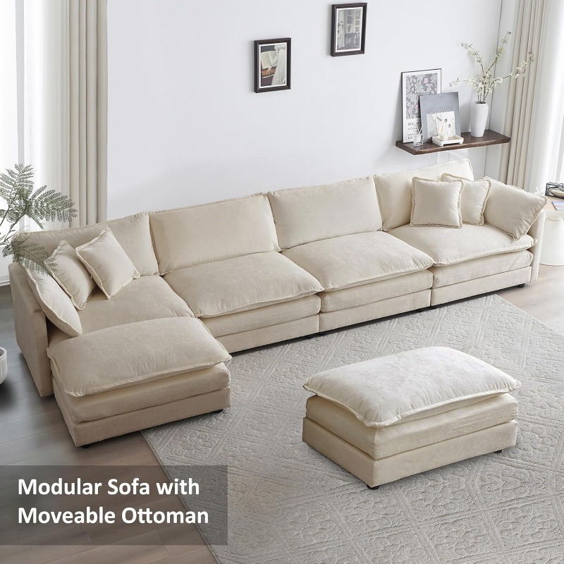 Transform your living room into a haven of relaxation with the 146” Oversized Modular Sectional Sofa. This spacious U-shaped sectional, crafted from ultra-soft chenille fabric, is more than just a sofa—it’s an experience of ultimate comfort and modern elegance. With deep, cushioned seats and a versatile modular design, this couch offers the flexibility to fit any space or style. It’s perfect for large gatherings, cozy movie nights, or simply stretching out after a long day.