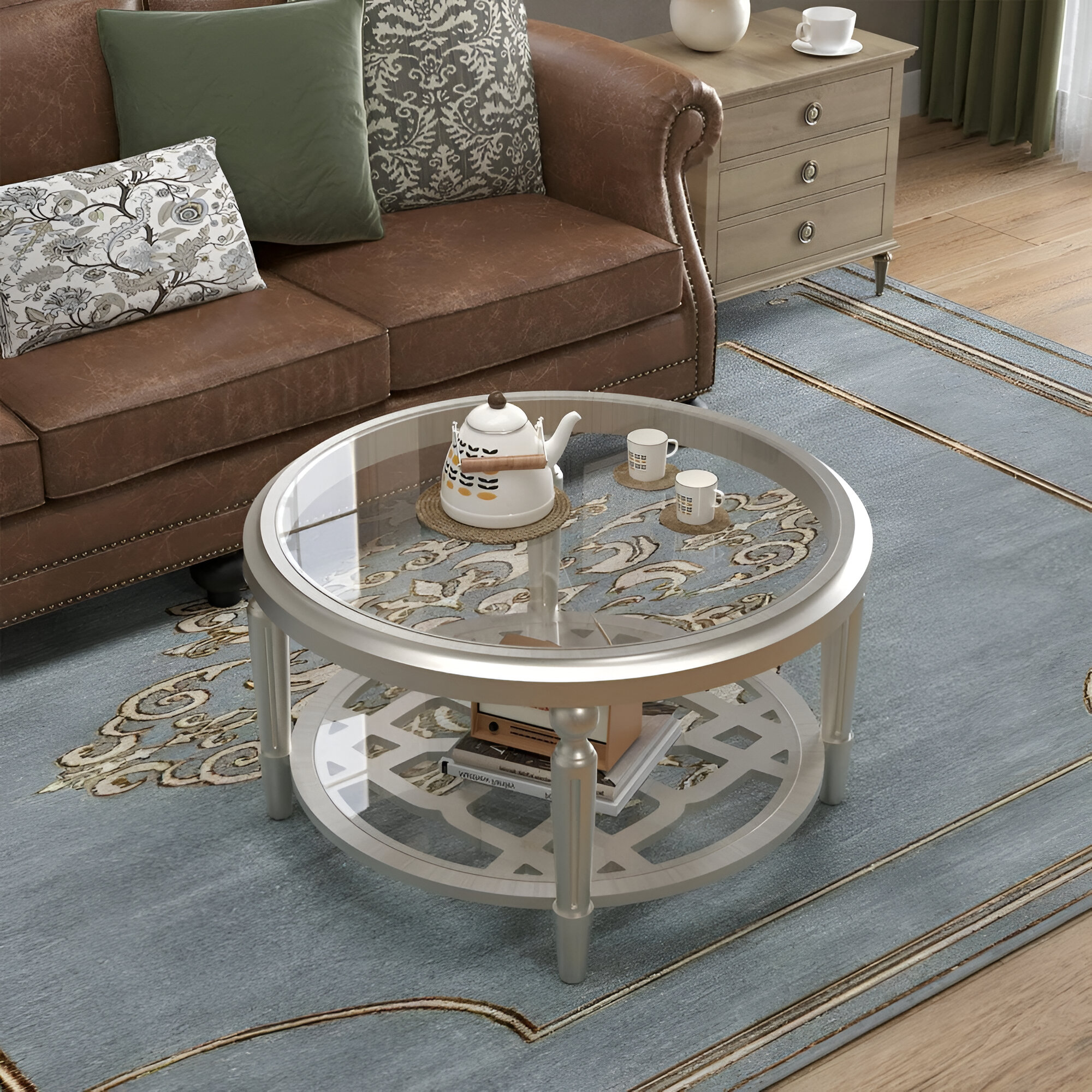 Make this 32" Round Glass Coffee Table the centerpiece of your living space today and enjoy the perfect combination of style, storage, and elegance!