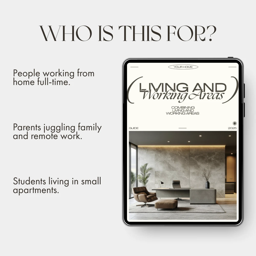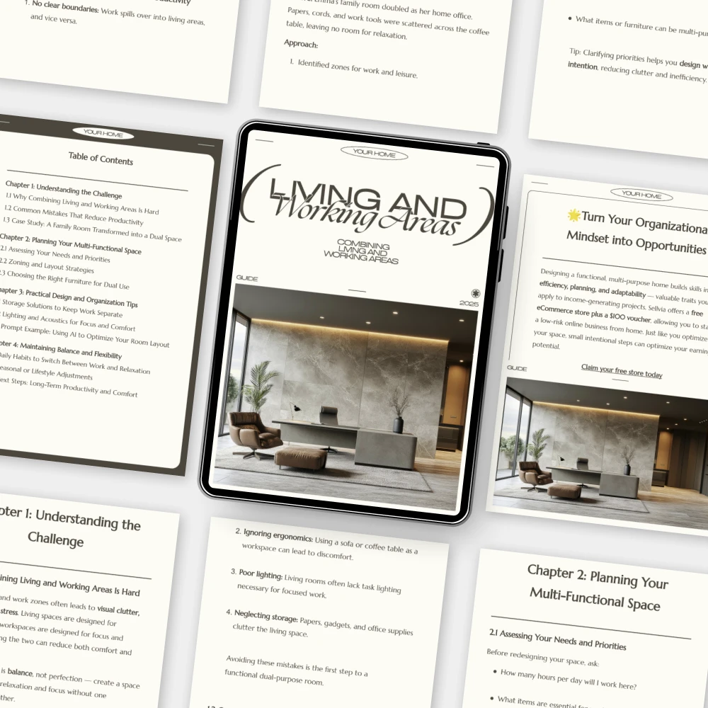 Discover how to create a stylish, productive environment where you can both live and work comfortably. The Combining Living and Working Areas guide is your complete digital roadmap to blending personal comfort with professional focus. Whether you live in a small apartment, shared home, or simply want to optimize your space, this guide offers practical strategies and expert tips for combining living and working areas so you can stay inspired and organized every day.