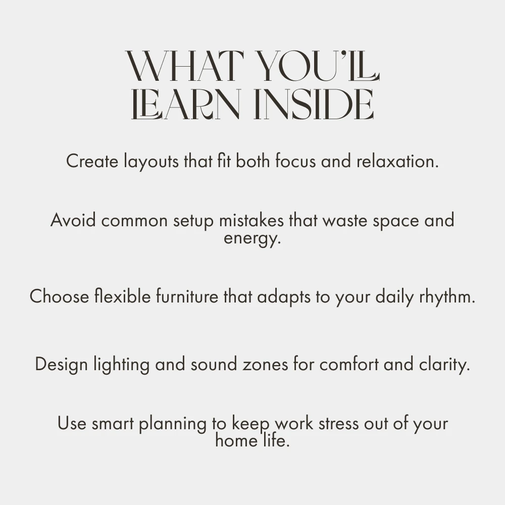 • Professional results: Learn to maximize both comfort and focus in one cohesive space.