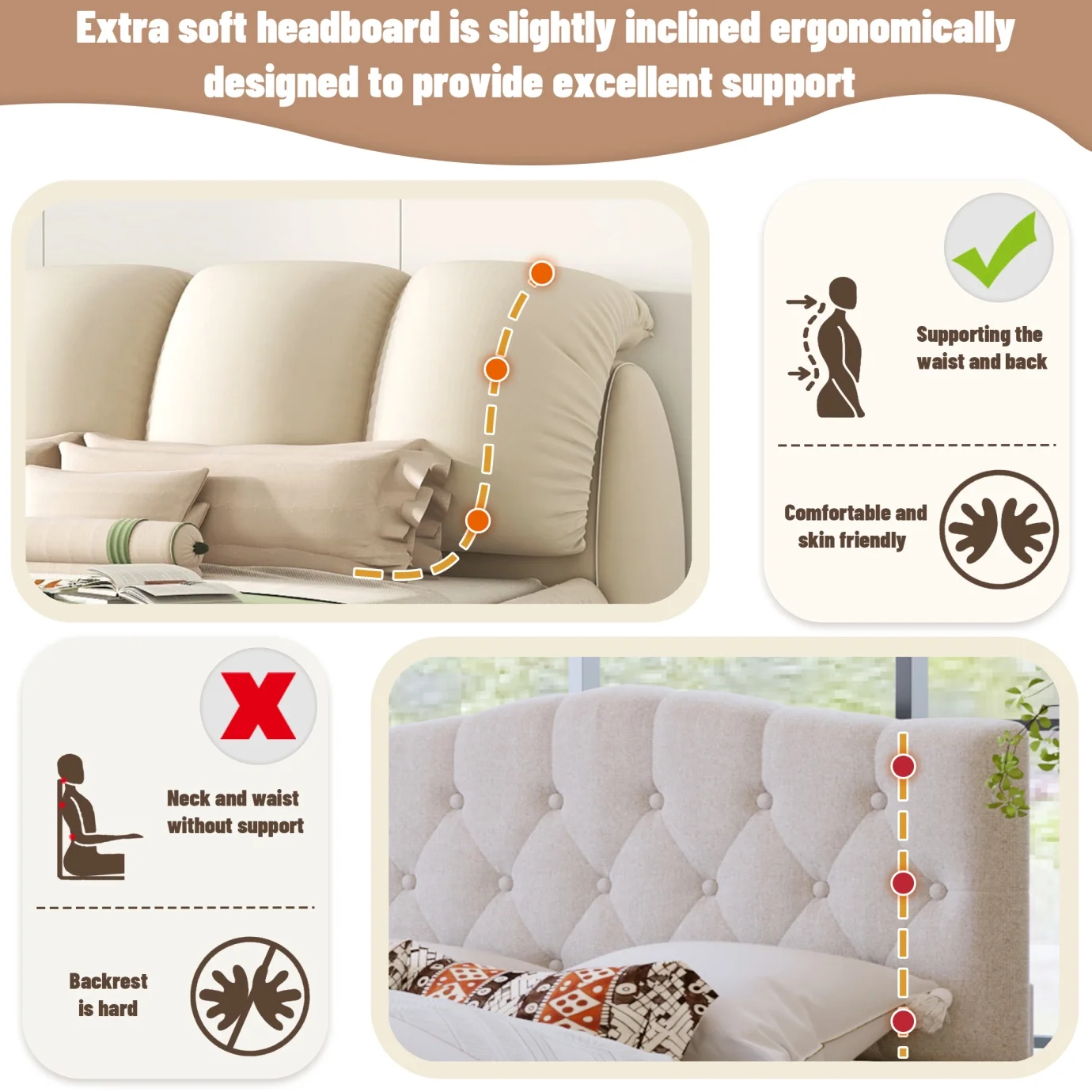 • Overstuffed padded headboard: Cushioned for superior back support while sitting or lounging