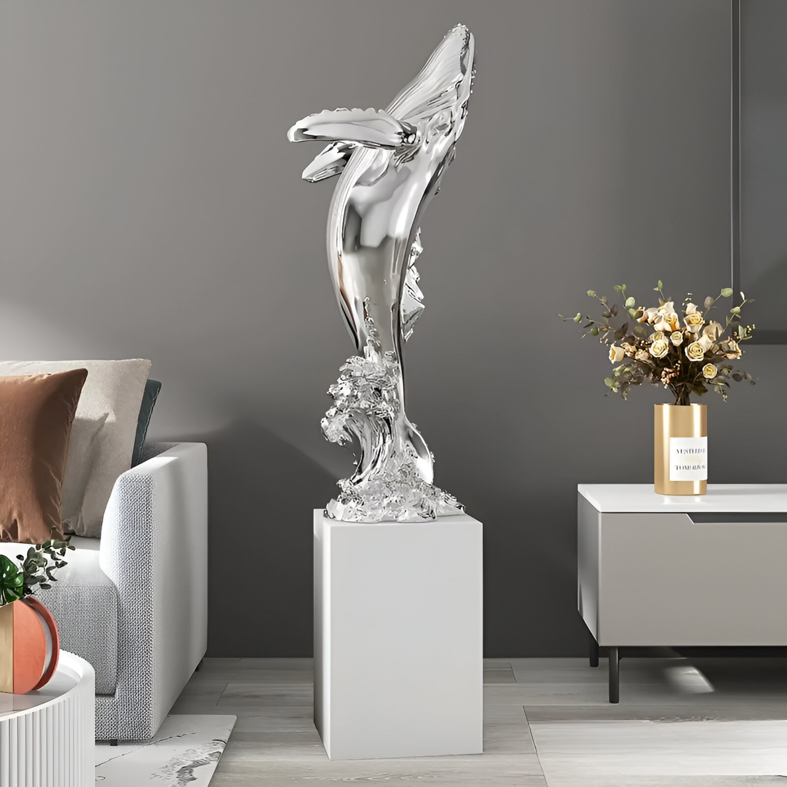 Transform any room into a gallery of modern elegance with this breathtaking Large Whale Sculpture. More than just a decoration, this magnificent resin whale captures the graceful power and mystery of the ocean, bringing a sense of calm and wonder to your living space. Whether placed in your entryway to welcome guests or beside your sofa as a conversation piece, this stunning artwork makes a powerful statement about your love for nature and sophisticated design.