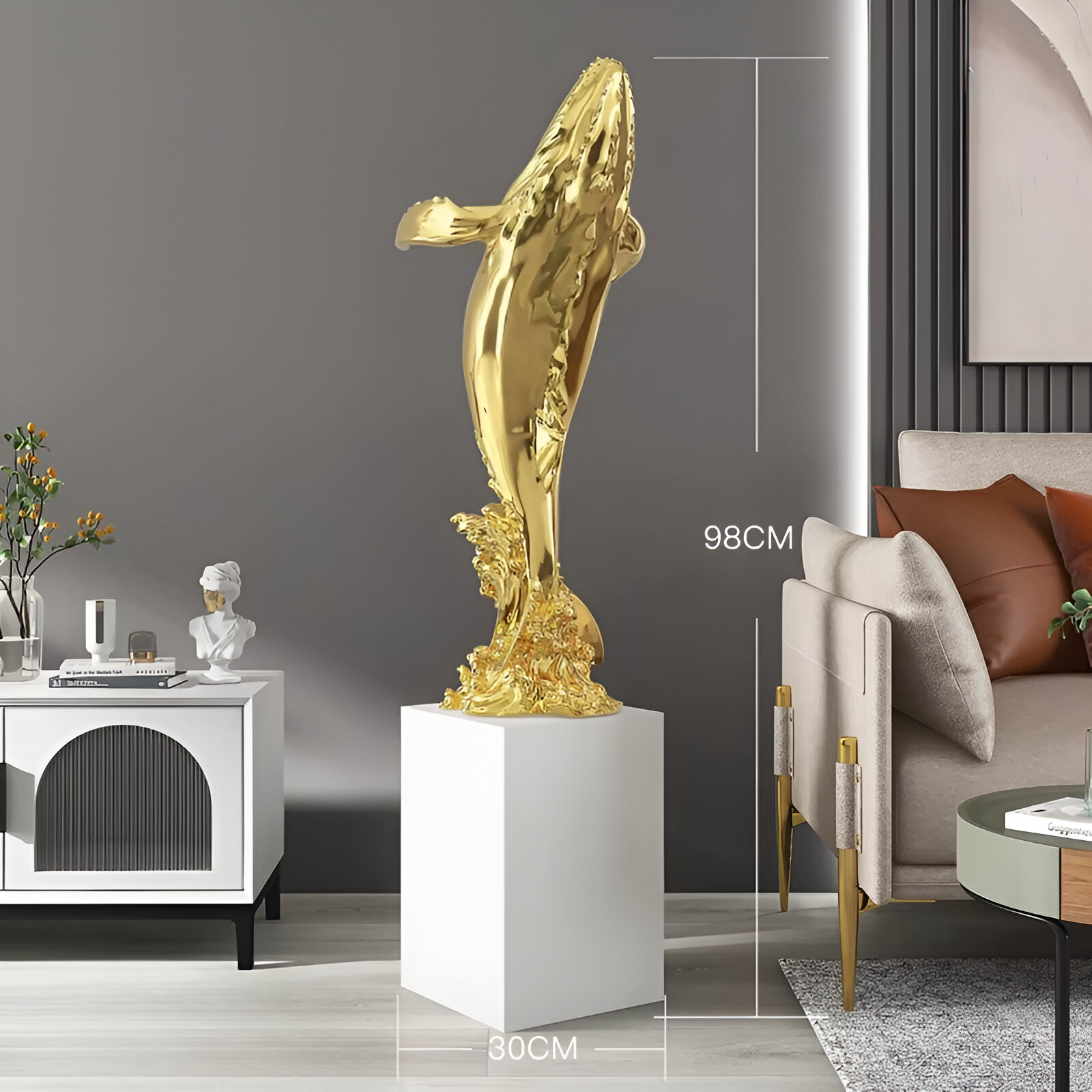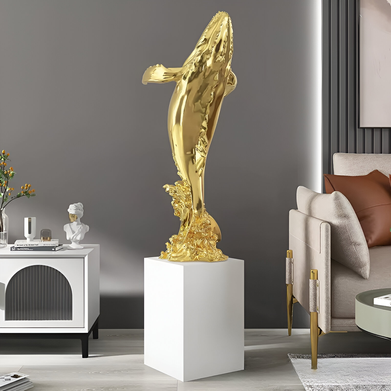 Why settle for ordinary decor when you can make a statement with this extraordinary Whale Sculpture? This isn't just another knick-knack—it's a piece of art that reflects your appreciation for nature's beauty and sophisticated design. It stands ready to transform your empty corners into showcases of elegance and your everyday spaces into galleries of inspiration. Let this magnificent creature swim into your heart and home.