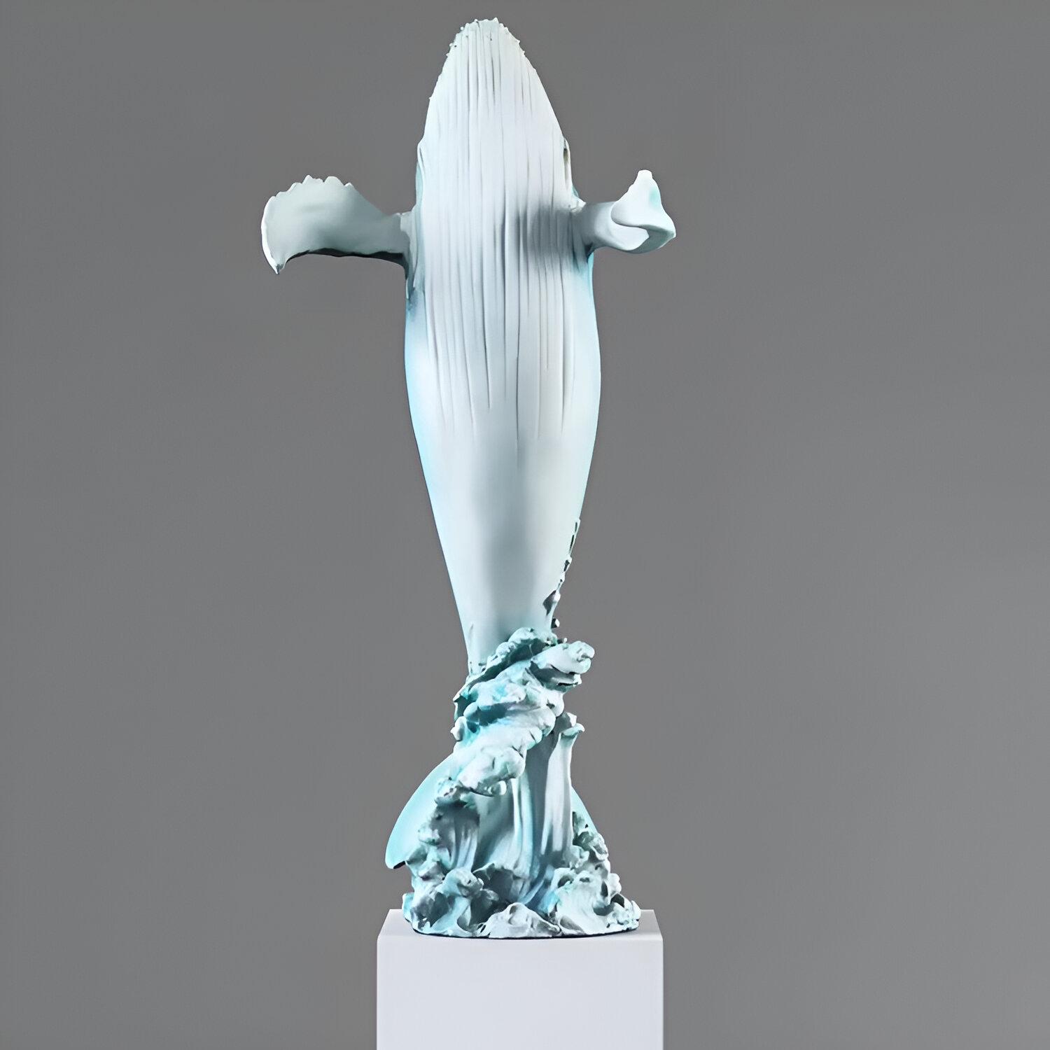 perfect blend of artistic vision and natural inspiration. Crafted from high-quality resin, the sculpture captures every elegant curve and powerful line of these magnificent ocean creatures with remarkable detail. The modern, streamlined style focuses on the whale's iconic form, creating a piece that feels both contemporary and timeless. Unlike mass-produced decor, this whale has a unique presence that commands attention while bringing a peaceful, organic energy to your home.
