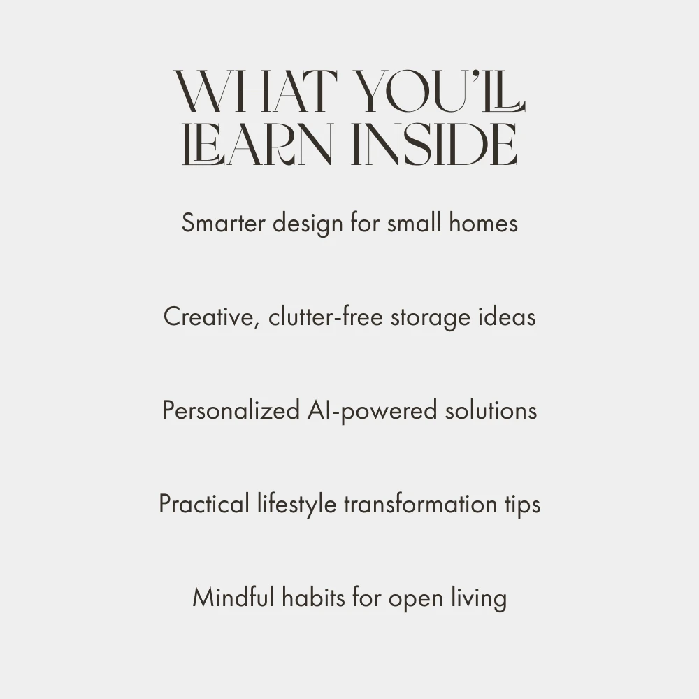Unlike other small-space resources, Living Large in Small Spaces integrates AI-driven exercises and real-world transformations, giving you both inspiration and tools to create a space that grows with you. It’s more than décor — it’s a mindset shift powered by technology and practical wisdom.