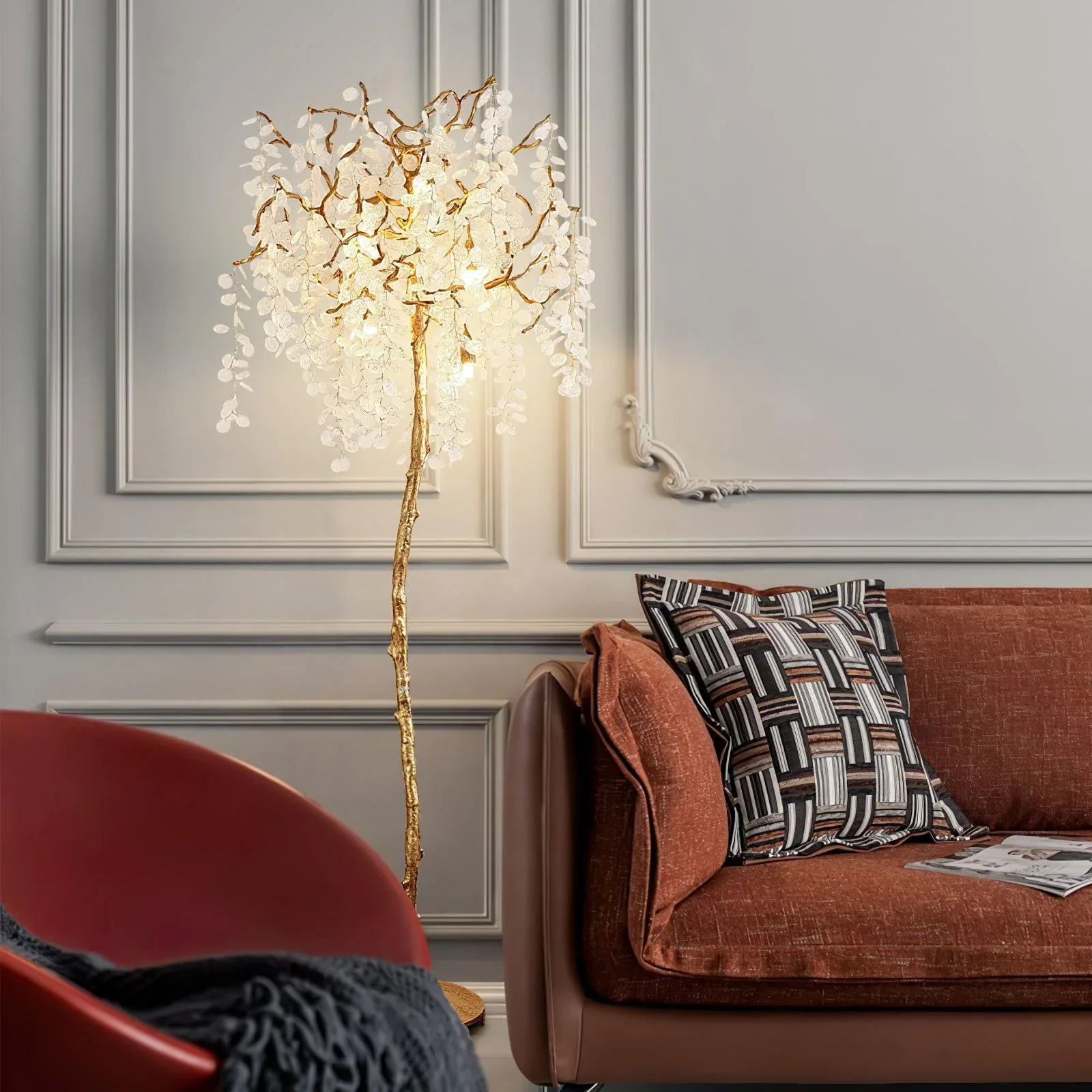 Post-Modern Crystal Tree Floor Lamp. Designed to captivate and inspire, this lamp blends nature-inspired artistry with modern sophistication. The intricate crystal branches shimmer under the glow of soft LED light, creating a stunning focal point for any room. Perfect for living rooms, bedrooms, or foyers, this lamp enhances your décor with a serene and elegant ambiance.