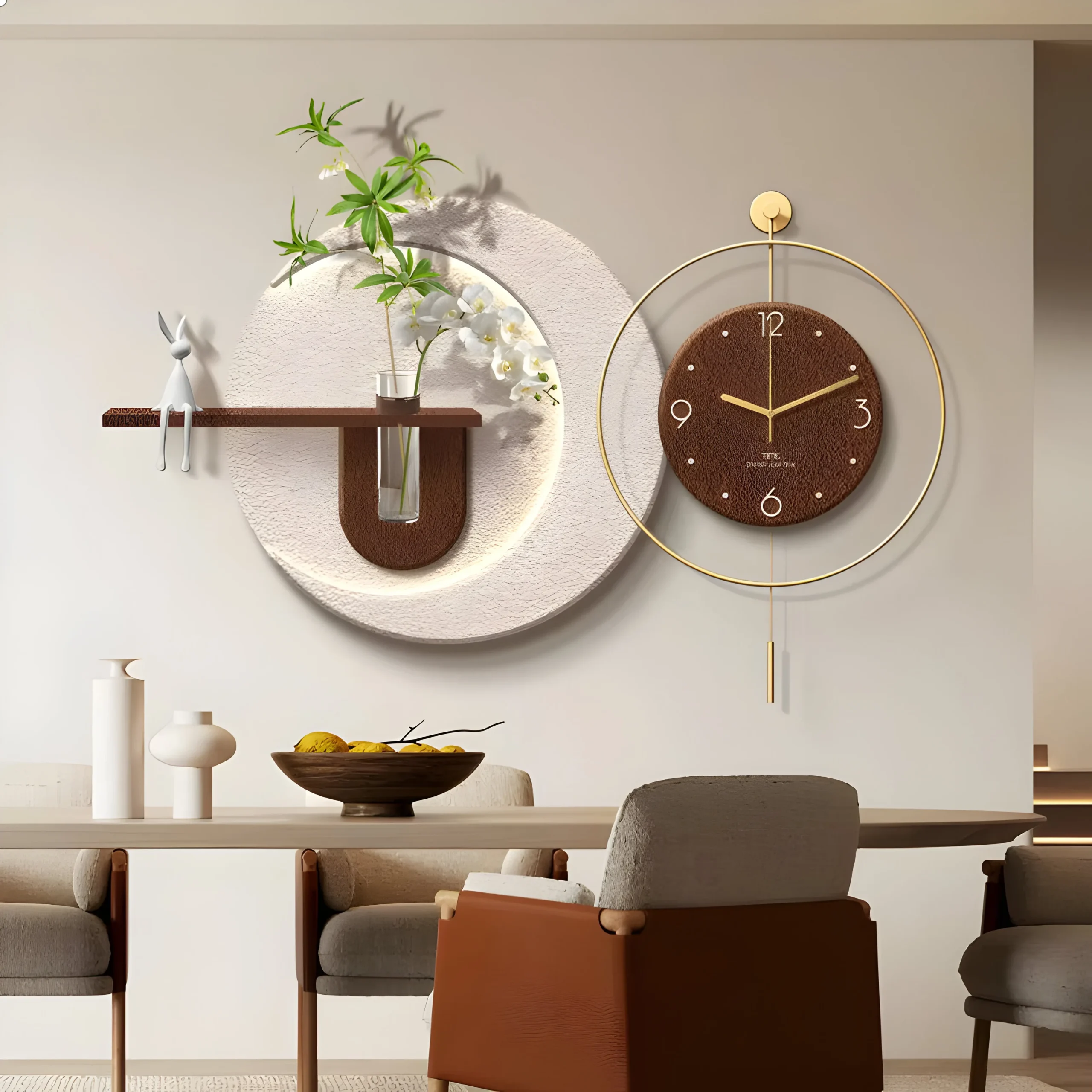 - Art Meets Function: Combines a decorative wall clock with lush greenery for a modern natural feel.