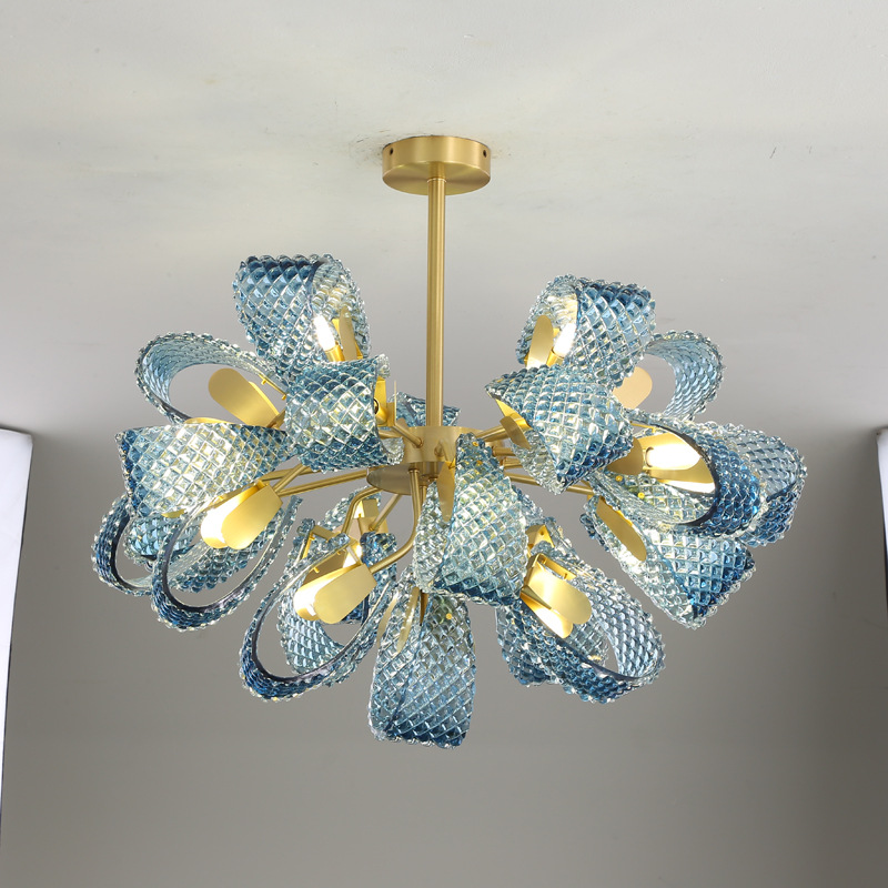 Bring a touch of sophistication and warmth to your interior with this Modern Blue Glass LED Pendant Lamp. Designed to elevate any space, this hanging chandelier combines artful craftsmanship with functional brilliance. The stunning blue stained glass shade paired with a polished gold copper frame creates an eye-catching statement piece perfect for hallways, bedrooms, dining areas, and bars. Its gentle glow and sleek form make it the ideal choice for those who love stylish, modern décor with a touch of luxury.Product Features