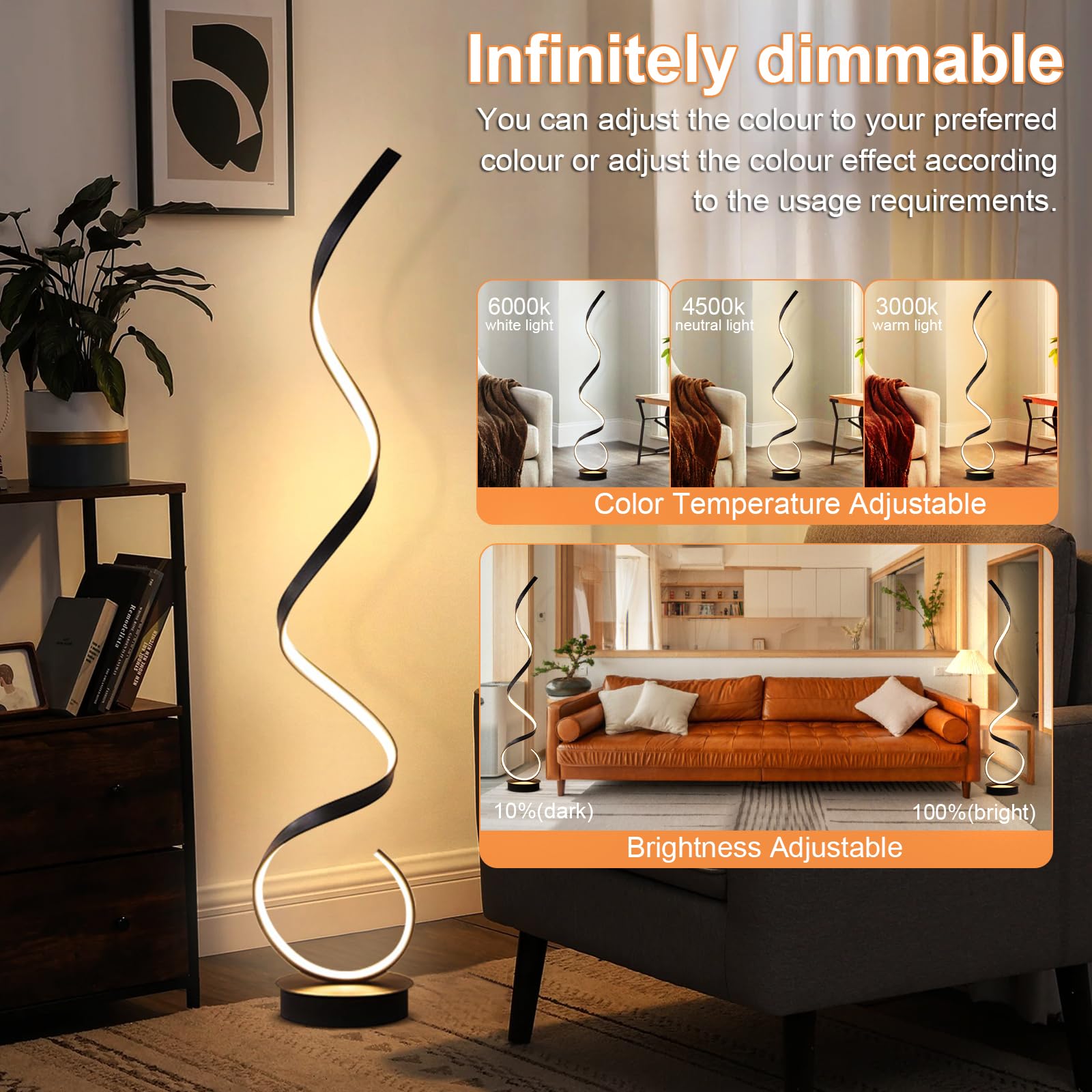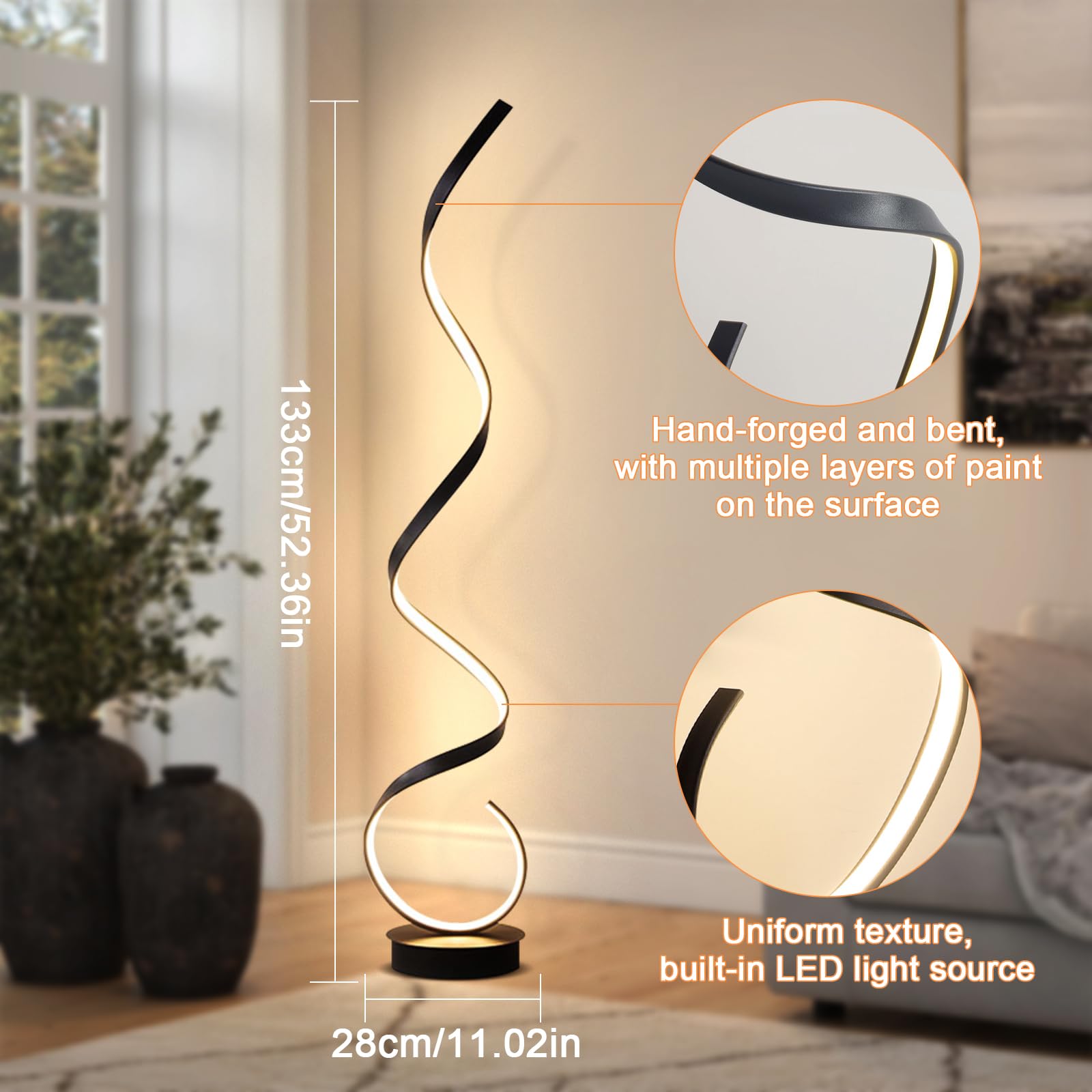 Experience the perfect blend of design and performance with this modern spiral LED floor lamp. Create the ambiance you love, showcase your style, and let your home shine brighter than ever.