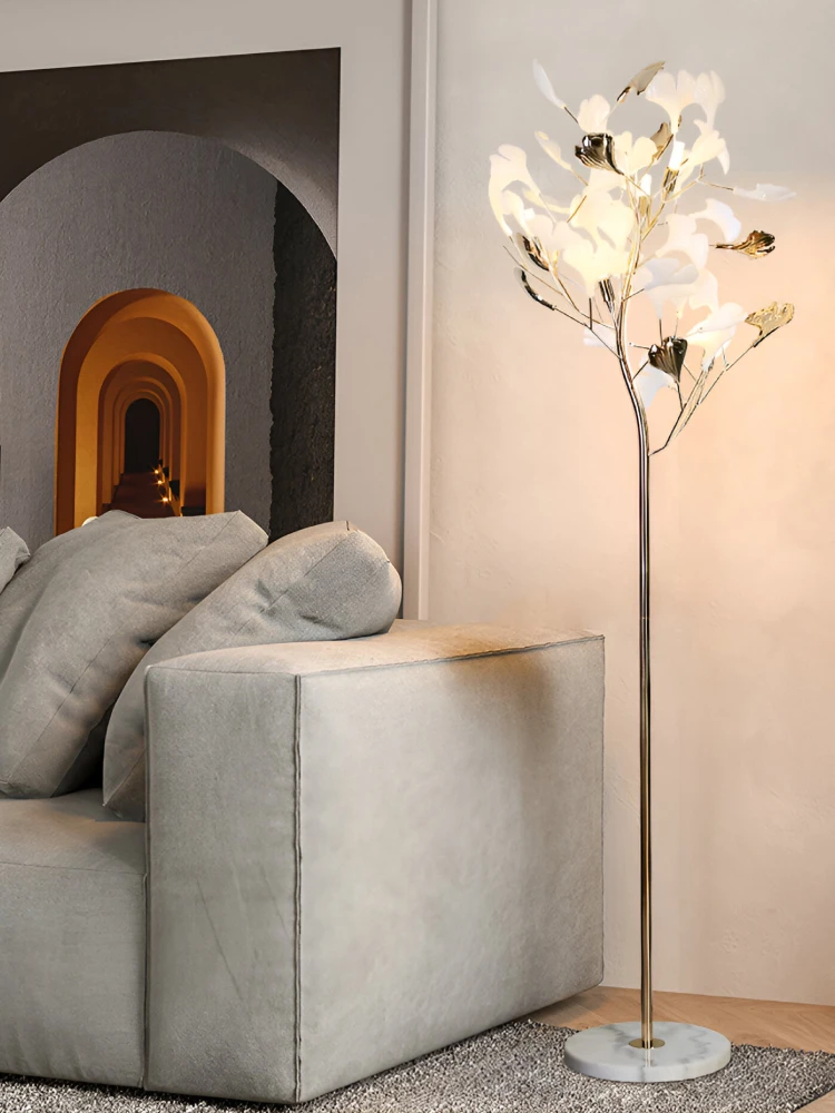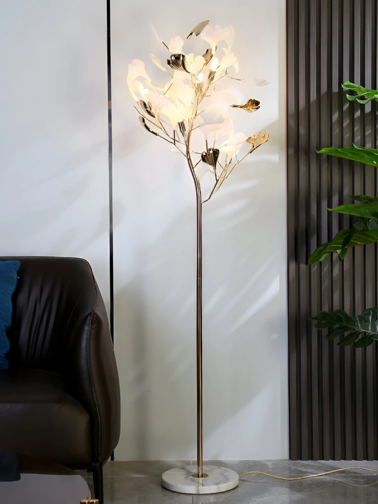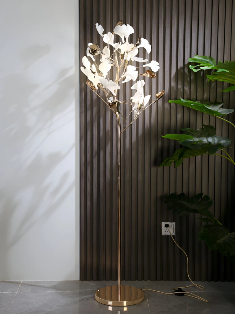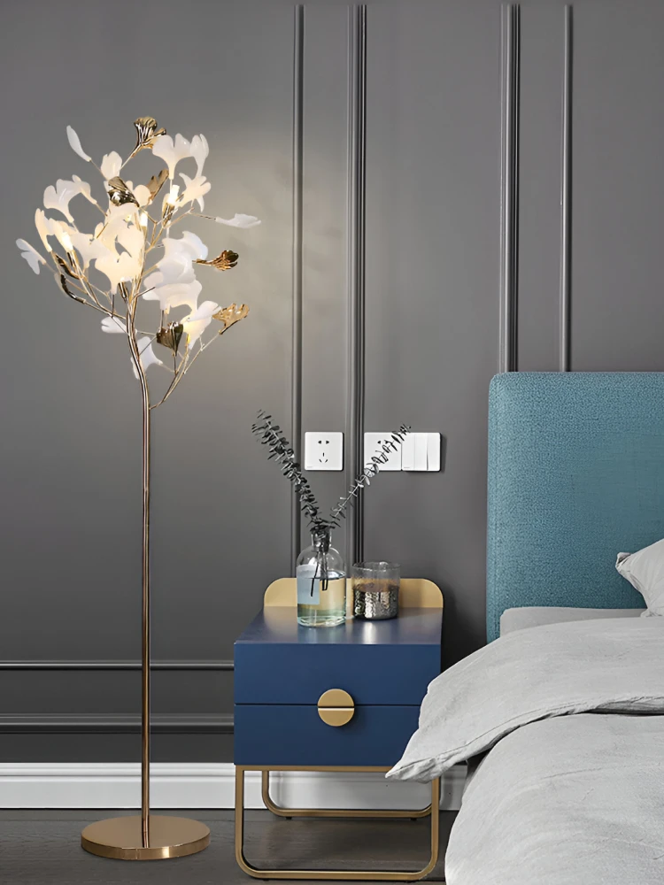 Nordic Ginkgo Leaf LED Floor Lamp. Designed with the graceful silhouette of a ginkgo flower, this lamp combines modern artistry and ambient lighting to create a serene, sophisticated atmosphere. Whether you place it in your living room, bedroom, or study, it adds a warm, decorative glow that elevates any space.