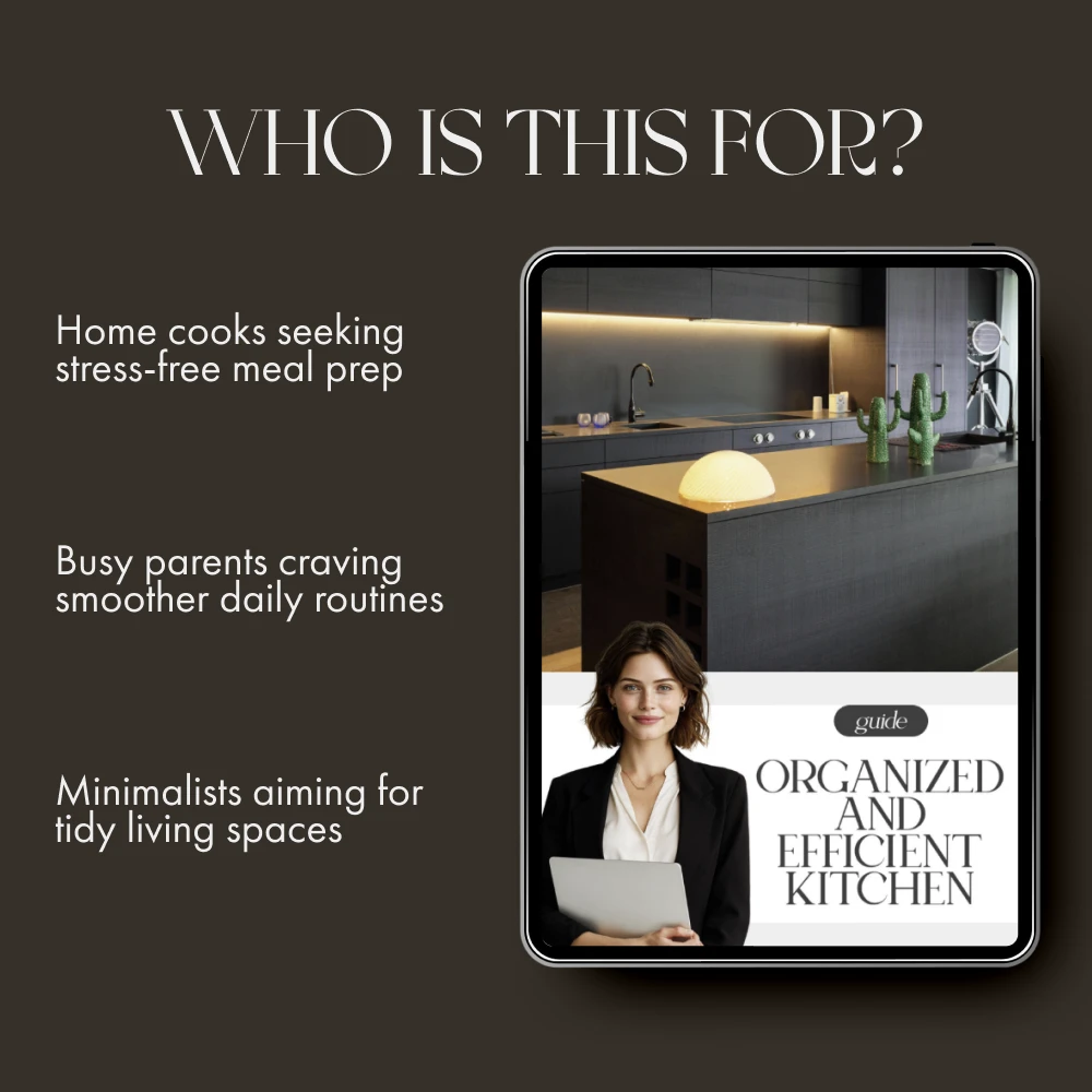 This guide is perfect for homeowners, renters, and anyone looking to maximize their kitchen space—whether small or large. It’s ideal for busy professionals, parents, or cooking enthusiasts who want a practical and modern approach to kitchen organization without the overwhelm.