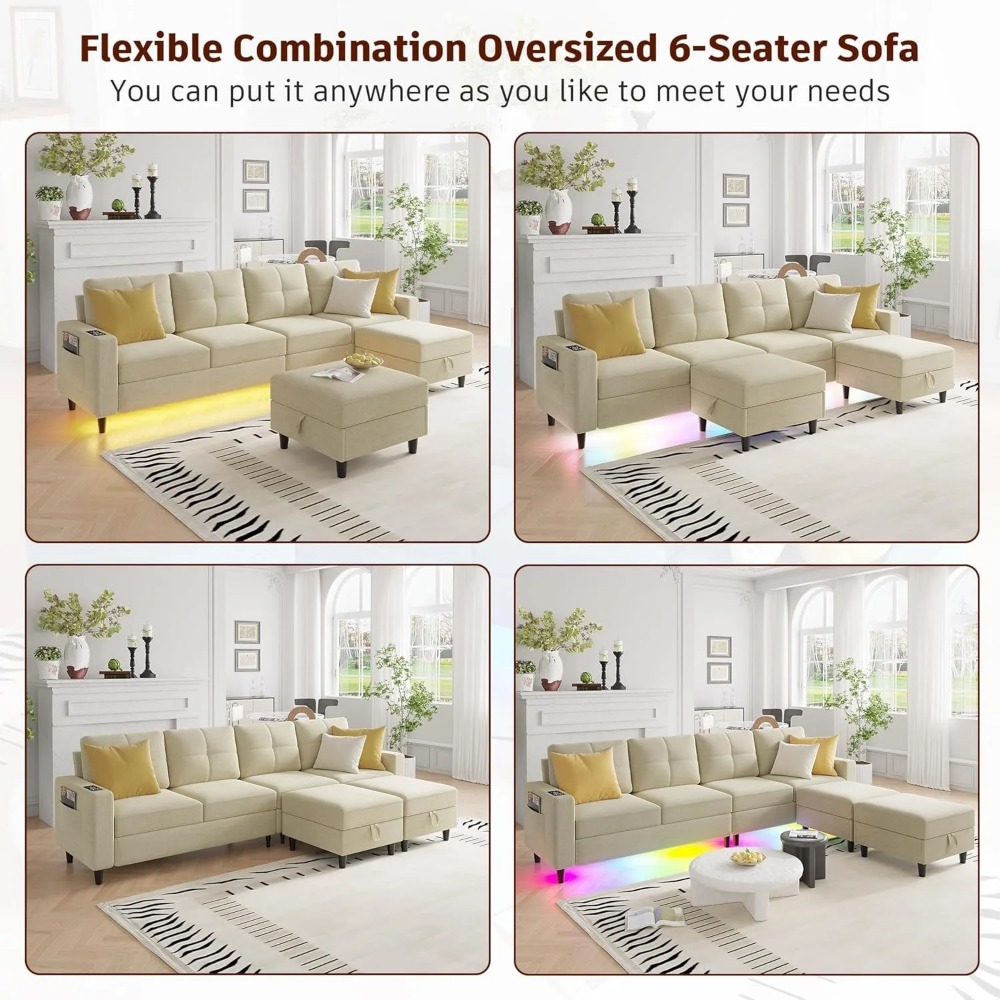 Upgrade your lounging experience with this oversized U-shaped sectional couch, designed to deliver unmatched comfort, tech-savvy features, and contemporary elegance. Whether you're entertaining friends, binge-watching your favorite series, or relaxing after a long day, this modular sofa set adds luxury and innovation to every moment. Made with breathable premium linen fabric and generously filled with high-density sponge cushions, this couch invites you to sit, stretch, or sprawl out in total relaxation.