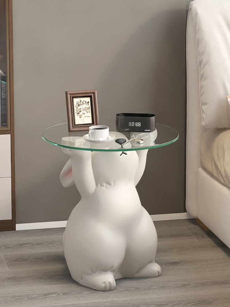Rabbit Statue Home Decor Side Table will enhance its aesthetic appeal. Its sleek, modern lines and playful rabbit figure blend seamlessly into various interior themes – from minimalist to more luxurious designs. Whether you are looking to add an eye-catching centerpiece or need a unique side table to complete your room, this creative piece fits perfectly with any decor.