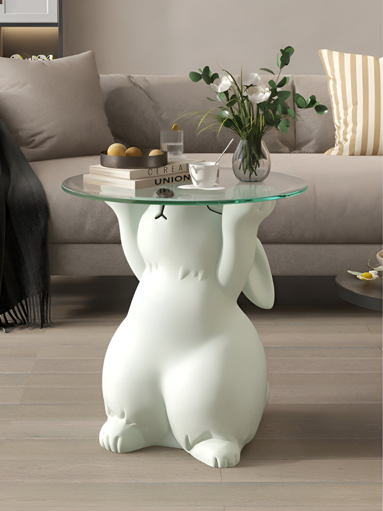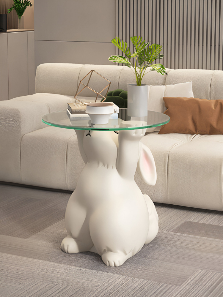 - Unique Design: Rabbit-shaped statue with a functional tabletop