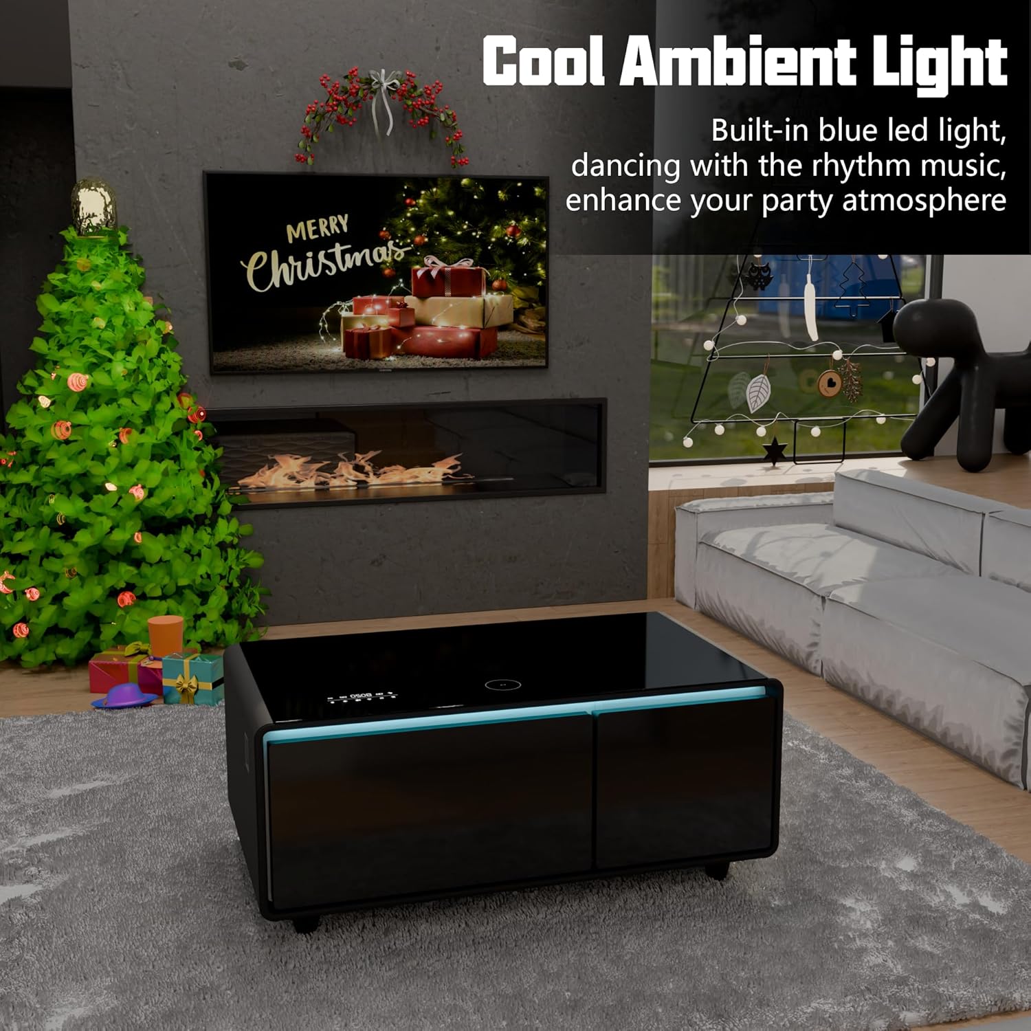 Smart Coffee Table featuring a built-in fridge, premium Bluetooth speakers, and wireless charging. Designed for those who value both style and functionality, this table is more than furniture — it’s a lifestyle upgrade.