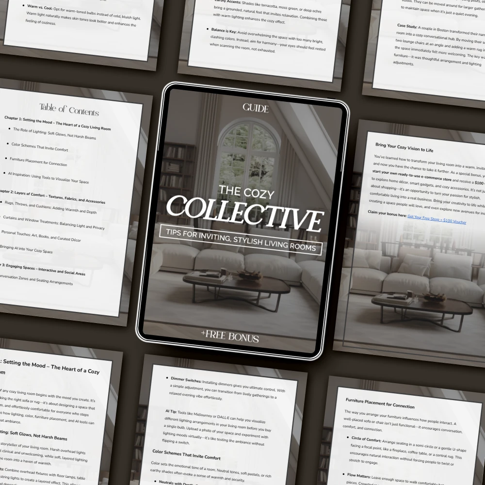 how to style living rooms for cozy gatherings. Whether you’re refreshing a small apartment nook or curating a statement-worthy family space, this beautifully designed eBook helps you create a home that feels as good as it looks. You’ll discover how to blend ambiance, comfort, and modern design with practical tips and AI-powered inspiration that make decorating fun and approachable.