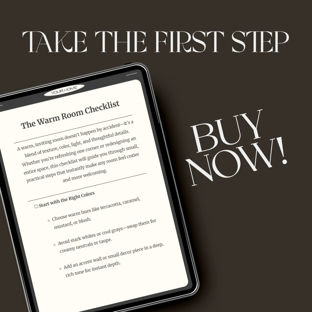 With The Warm Room Checklist, you’ll learn the small changes that make the biggest difference—how to combine colors, textures, and lighting to create a room that radiates comfort. Download your copy today and start transforming your space into the warm, inviting retreat you’ve always dreamed of. Ready to cozy up your home? Click “Add to Cart” to download The Warm Room Checklist instantly!